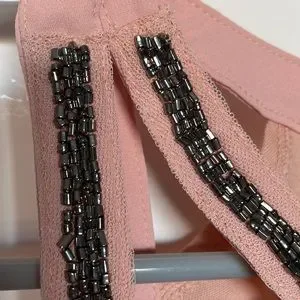 Express blouse blush color with metallic/pewter bead accents