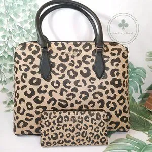 Kate Spade Darcy Leopard Cheetah Large Satchel NWT Gift Holiday Bifold Wallet