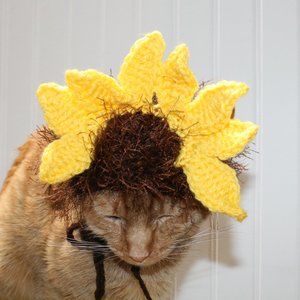 HAND CRAFTED Floral Sunflower Cat Hat Crochet Hairy Wig Costume Photo Prop