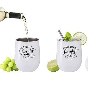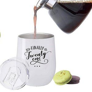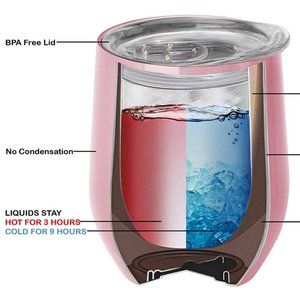 12 oz Stainless Steel Stemless Wine Tumbler with Lid and Straw