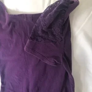 This beautiful purple top with a bateau, boat neck, with lace on a portion of the sleeve. It’s very comfortable to wear and soft on your skin. I received many compliments when I wore this shirt.