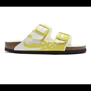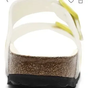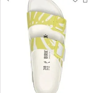 New in box Birkenstock Arizona Birko-Flor Sandals Size 39. Double buckle. White & lime. Size guide/Birkenstock shoe size chart size 39 as a size 8/8.5.