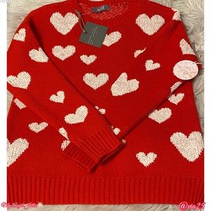 Marled Reunited Clothing Valentines Heart Print Round Neck Long Sleeve Red Sweater