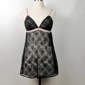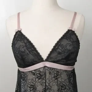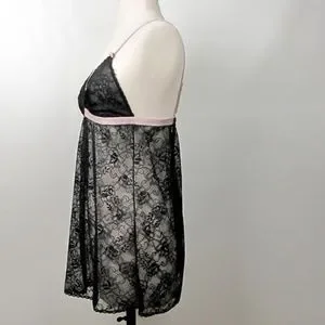 Gilligan Black Lace with Pink Trim Teddy Cami M