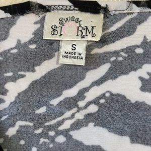 Sweet Storm Black/White S Cap Sleeve Dress Ties in the Back