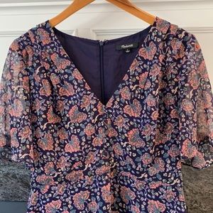 Madewell Floral Chiffon Dress with Button Front Detail and Floaty Sleeves