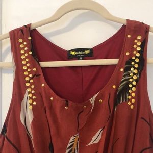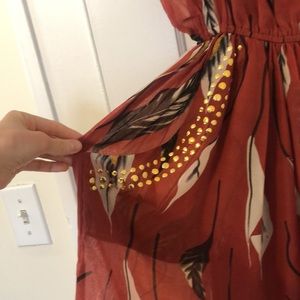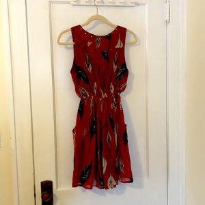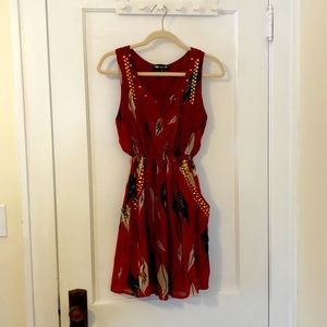 Red Vintage Bohemian Feather-Patterned Dress (Donating 4/15)