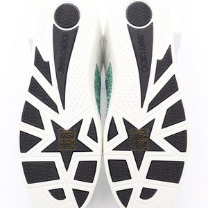 NIB Jimmy Choo Hawaii Leather Glitter Stripe Trainers Sneakers Shoes