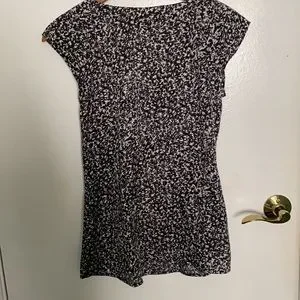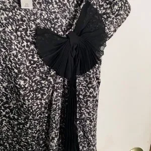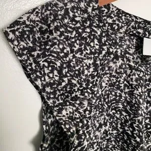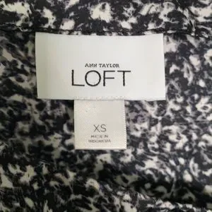 Ann Taylor Loft sleeveless silk blouse with black bow accent. It is black and white and is in EUC. Perfect top for the office.