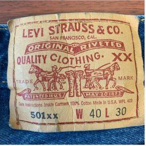 Size: 40/30 -- 36 because of shrinkage, check measurements in pics to make sure fit works