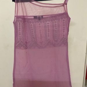 Sheer Pink Top, One shoulder, mirror and sequin work, Size M-L