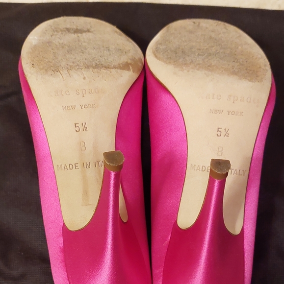 Kate Spade Clarice Pink Satin Bow Open Toe Stiletto Pumps, size 5.5B