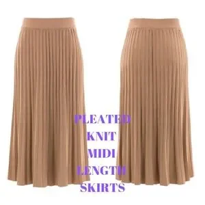 PLEATED KNIT MIDI LENGTH SKIRTS.