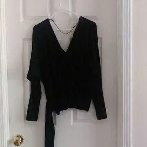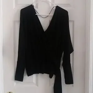 Black cute long sleeve top. Attached with a cute wrap around cute side tie . Low cut in front and back.