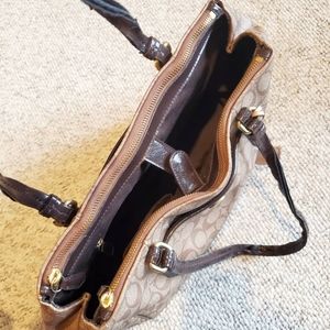 Coach Signature Canvas Tan & Brown Shoulder Bag