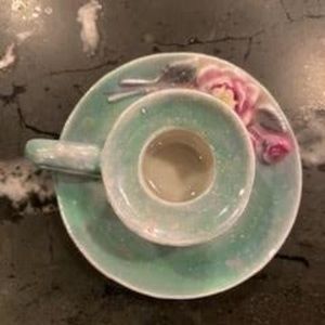 Sweet Childhood Vintage Gift 1920'-1930's Single Candle holder with Handle, 3/4"h X 3"w, childhood gift, see sticker on the bottom, no cracks or chips