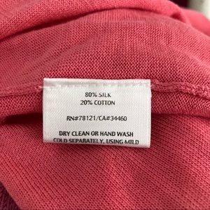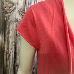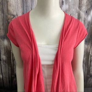 Eileen Fisher cardigan, size xsmall. Gently used condition but in good shape. Pink color. Light weight cardigan. Soft material. Has stretch. See pictures of design on front. Clean no stains or holes