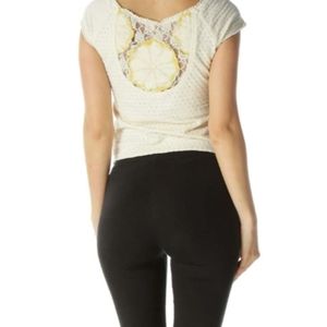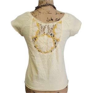 Free People Cream/Yellow Lace Embroidered Top, Size Medium
