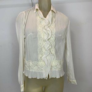 Coldwater Creek Blouse top Size X Small Ivory Crinkle lace New $69