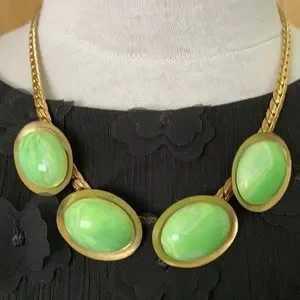 💥2 for $20 Vintage ‘70’s Necklace With Jade-Coloured Gemstones