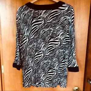 Ladies 1X zebra print top is perfect for day or night wear..Pull over with 3/4 length sleeve