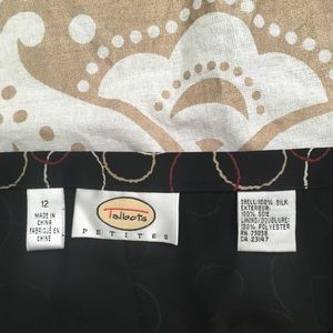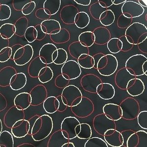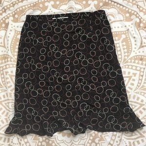 So cute! In excellent condition! A sweet midi length skirt with a little ruffle along bottom. Black, red, white and cream circle pattern. Has working side zipper and button closure. Size 12 Talbots petites. From the late 90's, 1990's, vintage style, retro style, pinup style, girly, work wear, Y2K.