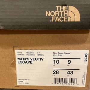 New In Box- The North Face Men’s VECTIV Escape Trail Sneakers In New Taupe Green / Zinc Grey.
