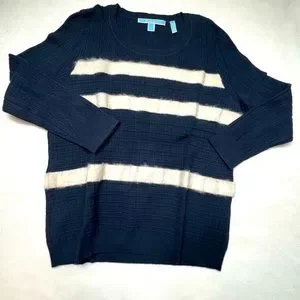 Draper James Navy White Striped Crewneck Sweater Size L