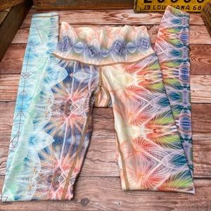 ✨eco friendly yoga pilates leggings tights pants free people street urban casual athletic hippie vibrant sexy JLO alo Teeki buttery soft modern bohemian exercise athleisure pattern vibrant unique art graffiti rare vintage jean tribal karma flowers rainbow multicolor niyamasol rare limited edition jlo favorite