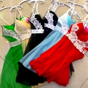 Beautifully detailed lace slips with lovely embroidery along the chest area. Fits sizes xs-m and available in red black and gold