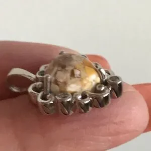 Sterling Silver pendant with Australian Jasper center stone (extracted from the Mooka Creek in Western Australian) surrounded by perfectly clear genuine White Sapphires. This dainty pendant is brand new ready for gifting.