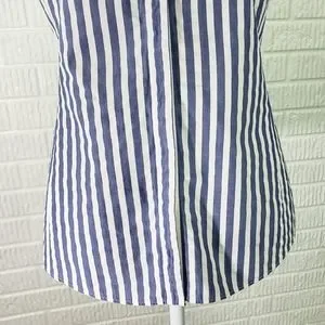 Lafayette 148 New York Blouse Sleeveless Button Front Blue White Stripe