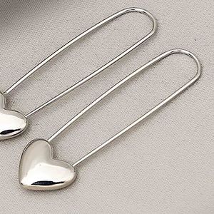 Sterling Silver Y2K minimalist heart safety pin earrings measure 1.7”in length.