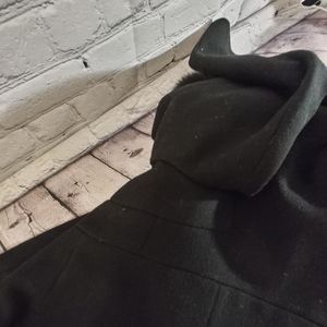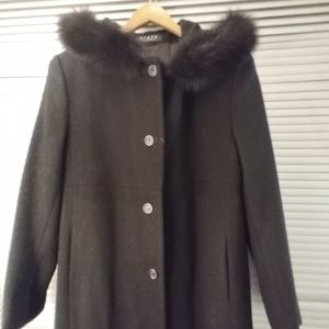 Steve by Searle Fur Trim Hood Long Coat Cashmere Blend Coat Size 10 Black