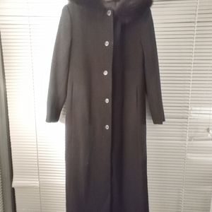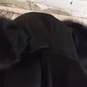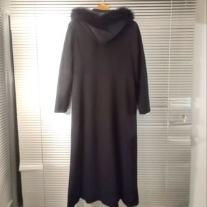 Steve by Searle Fur Trim Hood Black Cashmere Blend Long Coat