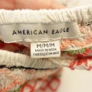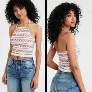AE AMERICAN EAGLE OUTFITTERS Ivory White Crop Top MEDIUM Halter Smocked