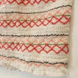 AE AMERICAN EAGLE Outfitters MEDIUM Crop Top features- Halter Strappy Smocked Horizontal Colorful Crisscross pattern Ribbed and Smocked Self-tie Closure Made in India