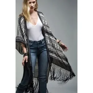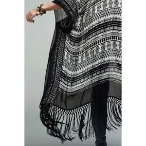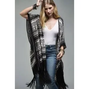 SOLD OUT Black Ethnic Print Tassel Fringe Kimono Coverup Wrap