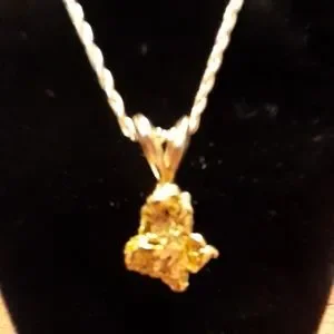 14 K yellow gold Nugget style pendant on a 14 K yellow gold chain and Nugget style earrings set. necklace weight 1.7 grams and earrings weigh 3.3 grams. chain is 20 inches