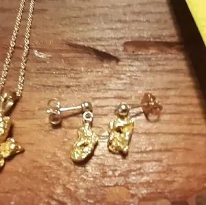 14 K yellow gold Nugget style pendant and Nugget style dangle earrings