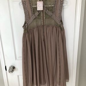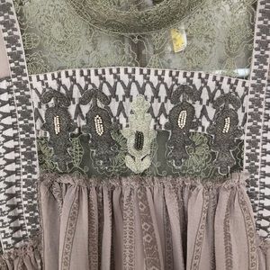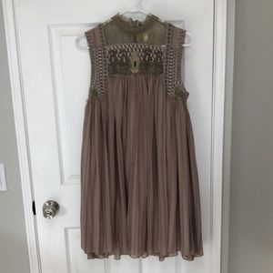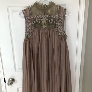 Beautiful Free People dress with zippered back, high neck, lace and bead details