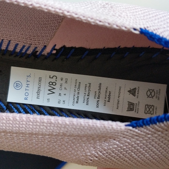 black insoles and gray outsoles. Features Rothy's signature blue halo.