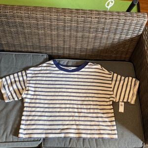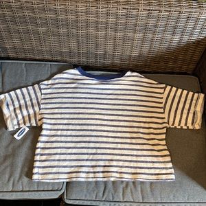 Old Navy Cream & Navy Striped Short-sleeved Shirt