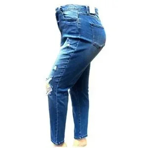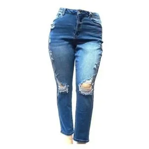 Women Wax Plus Size Blue Ripped Mom Jeans 90250 XL