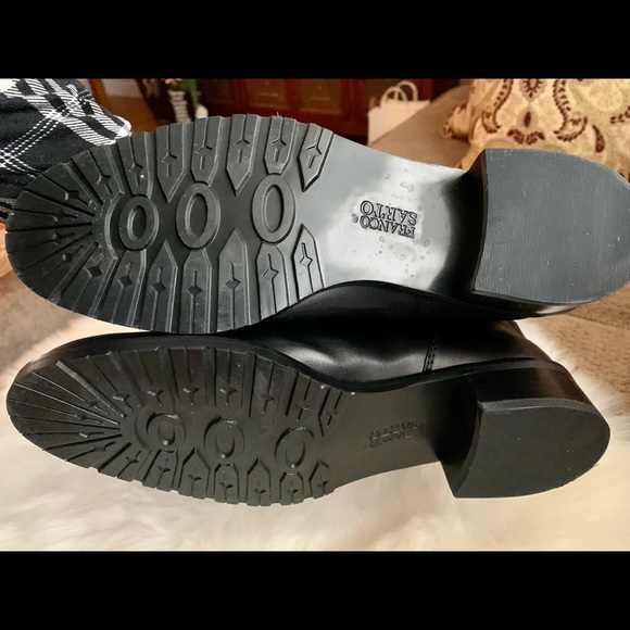 These Franco Sarto black leather boots are in excellent condition… I only wore them a handful of times as you can tell from the photo the bottoms of the boots are in pristine condition….. The zip in the back and have a snap at the top… measurements are included in the photos… please let me know if you have any other questions… these boots come from a smoke free and pet free home.