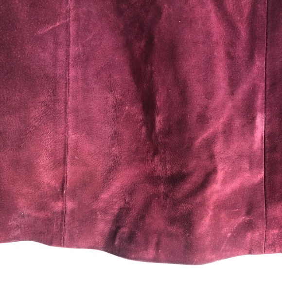 Vintage Genuine Leather Deep Red High Waisted Pencil Skirt 0