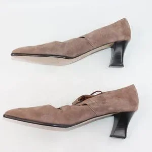 Ellen Tracy Womens Sz 10 Linda Allard Brown Suede Block Heeled Pointed Toes
