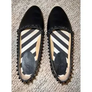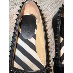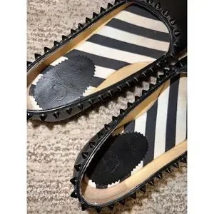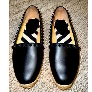 Black leather spiked espadrilles from Christian Louboutin A traditional braided espadrille sole, pre-owned comes with original box and dust bags.