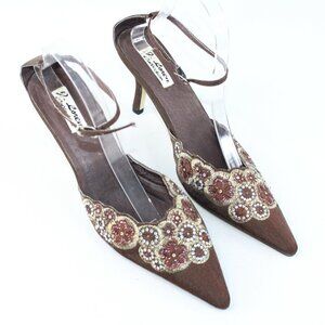 J Loren Collection 9.5M Brown Bronze Beaded Embellishment Pointed Toe Heels