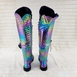 Travis Festive Quilted Metallic Rainbow Corset Lace Over the Knee Boots